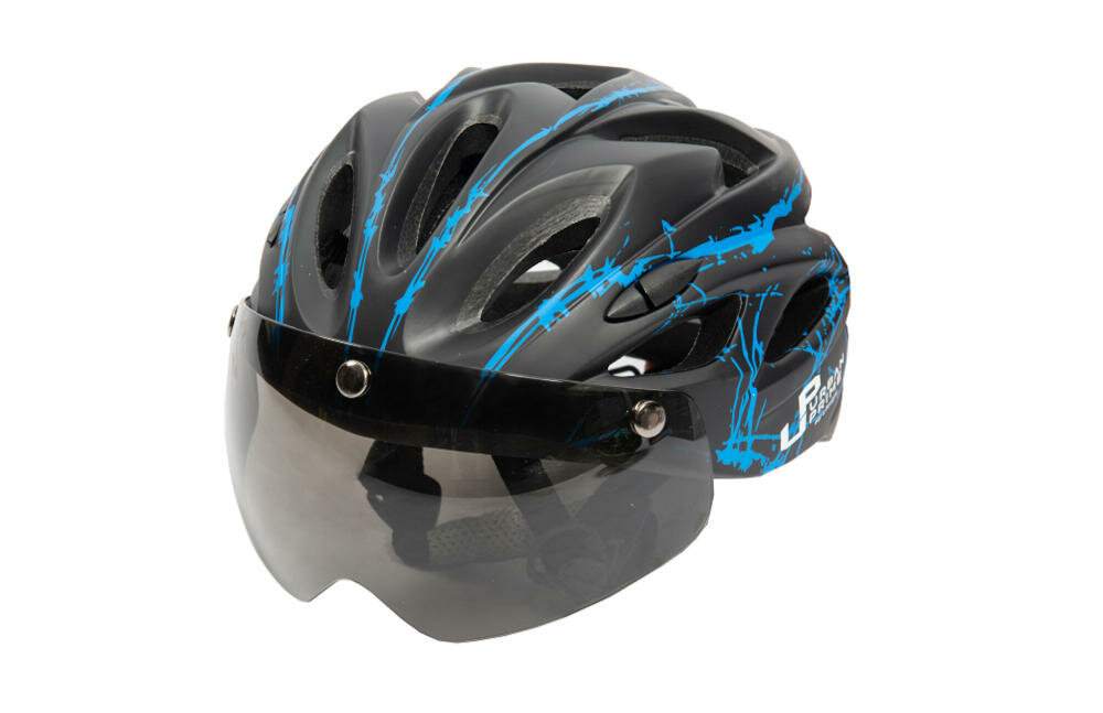 Kask rowerowy URBAN PRIME UP-HLM-EBK-BB Czarno-niebieski MTB (rozmiar L) + Magnetyczne okulary przeciwsłoneczne