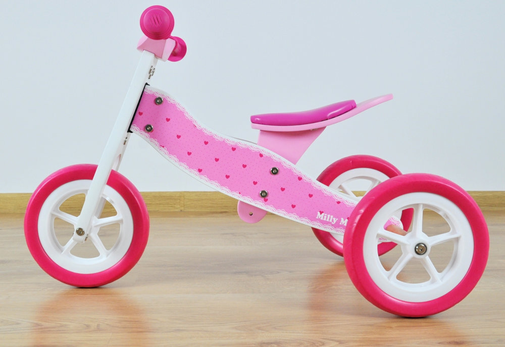 Rowerek biegowy MILLY MALLY Look 2w1 Hearts Różowo-biały