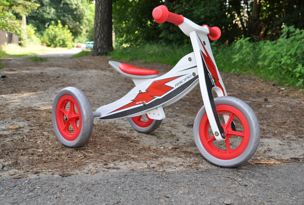 Największą zaletą tego pojazdu jest możliwość przerobienia go z trójkołowego rowerka na dwukołowy biegacz. Można tym sposobem podarować dziecku dwie atrakcje w cenie jednej, co zaoszczędzi nie tylko pieniądze, ale i miejsce w domu lub garażu. Z takim rozwiązaniem także łatwiej będzie się wybrać na wakacyjną podróż, gdyż w miejsce jednego rowerka wchodzą dwa.