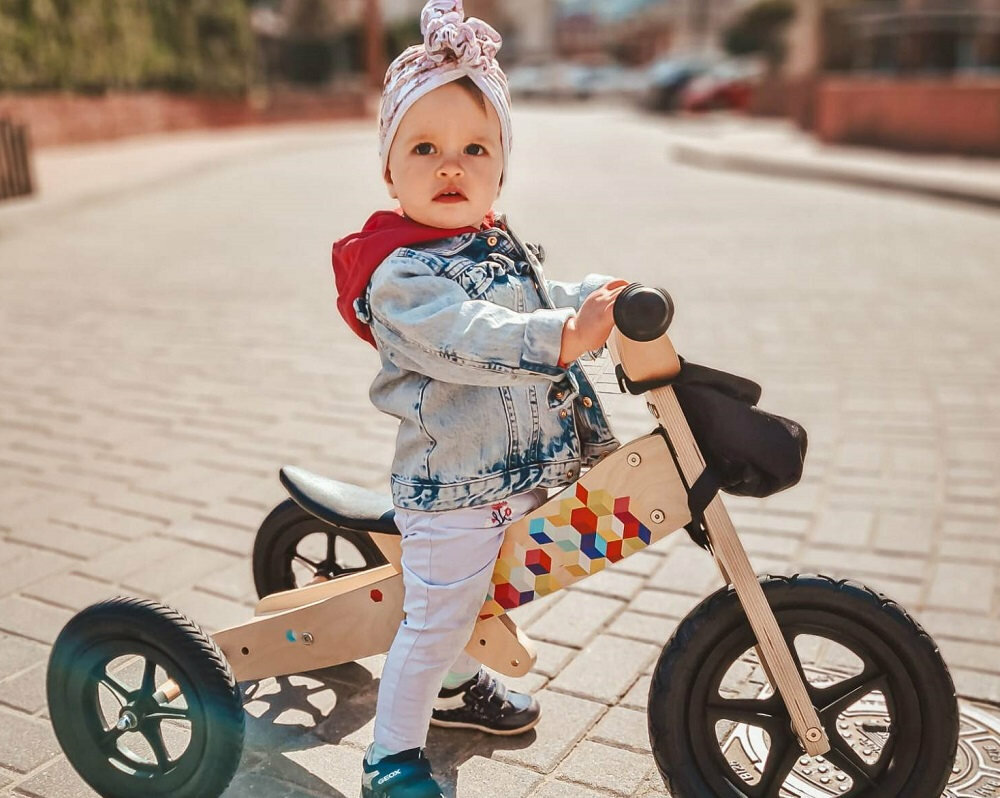 Rowerek biegowy SUN BABY Twist Plus Cubic to propozycja, która oferuje dwa rozwiązania: rowerek 3-kołowy i rowerek biegowy. Dzięki temu można go z łatwością dopasować do aktualnych potrzeb dziecka. Drewniana konstrukcja jest solidna i trwała, stanowiąc wspaniałe, ekologiczne rozwiązanie. Regulacja siodełka, pompowane koła i montaż bez użycia narzędzi sprawiają, że rowerek jest niezwykle funkcjonalny i wygodny.