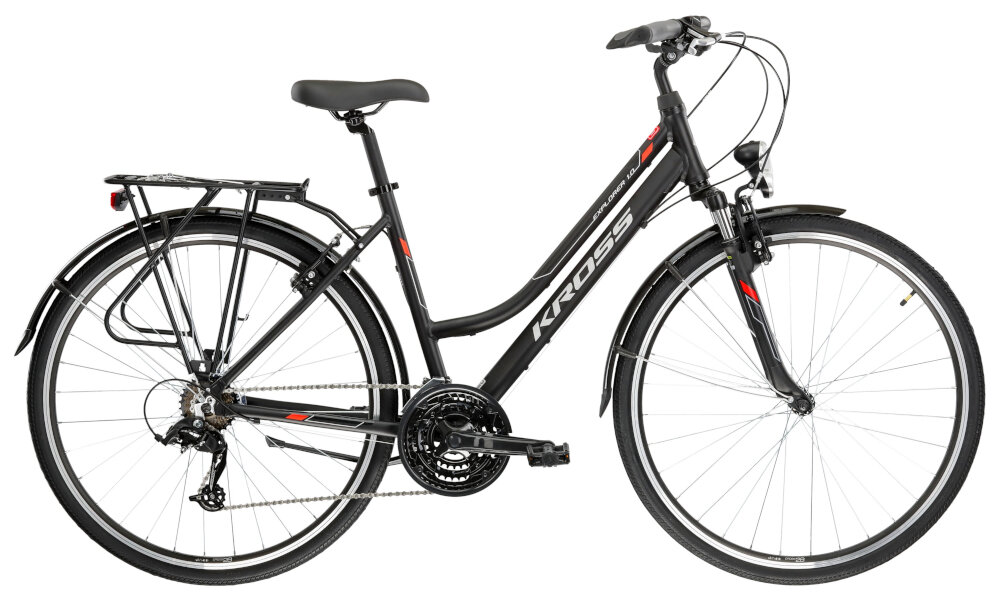 Rower trekkingowy KROSS Explorer 1.0 D19 28 cali damski Czarno-srebrno-czerwony