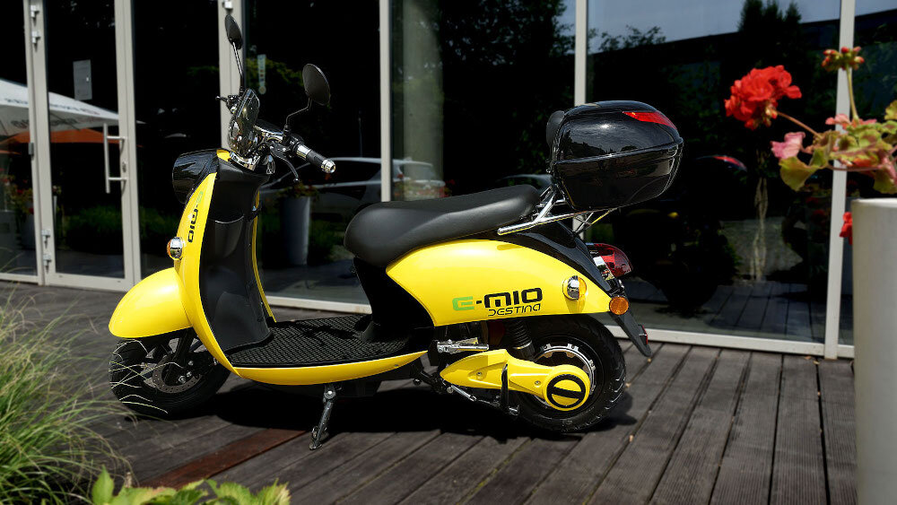 Skuter elektryczny E-MIO Destina z kufrem 50km 10" Żółty