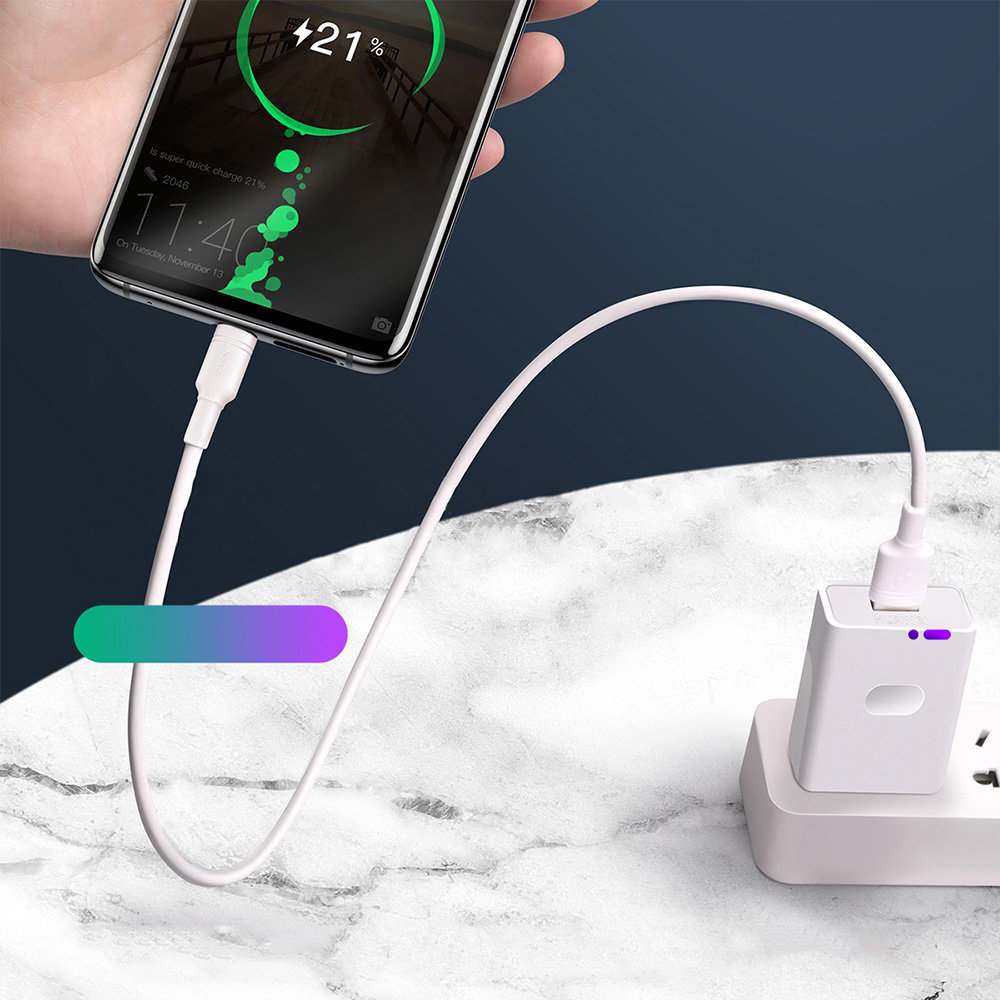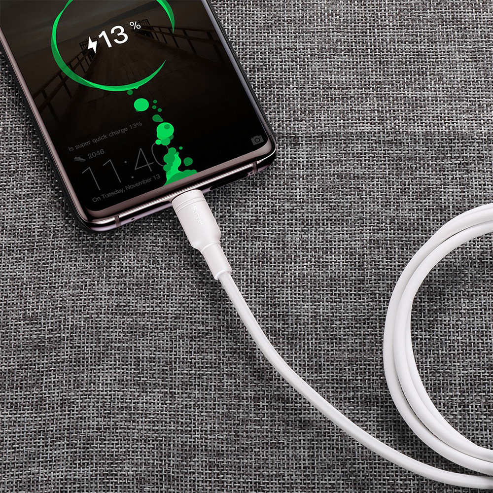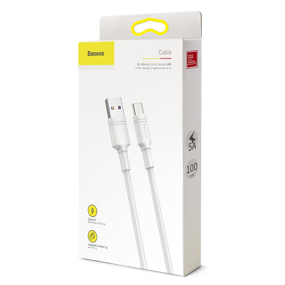 Kabel USB-C BASEUS Double Ring - wytrzymały kabel wykonany z odpornego i elastycznego TPE, w którym jego łączenie z wtyczką zostało dodatkowo wzmocnione w taki sposób, aby przetrwało długie i intensywne użytkowanie. Podniesiona została również wytrzymałość wtyków - przeszły test 10 tys podłączeń oraz zostały one specjalnie wyprofilowane, tak aby możliwe było użytkowanie kabla nawet w przypadku, kiedy Twój telefon znajduje się w etui. Kabel posiada funkcję szybkiego ładowania oraz przesyłania danych w tym samym momencie. Obsługuje szybkie ładowanie aż do 5A mocy. Kabel o długości 100 cm.
