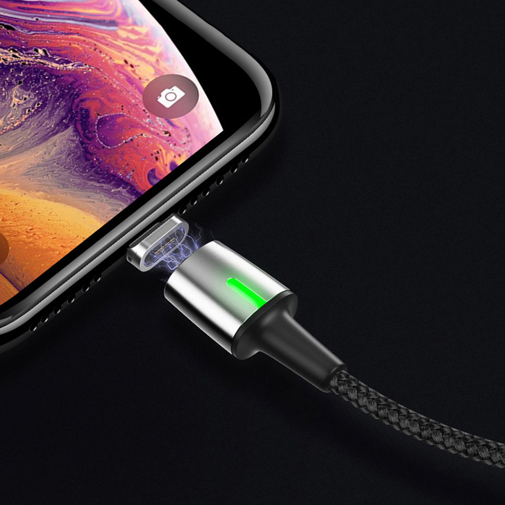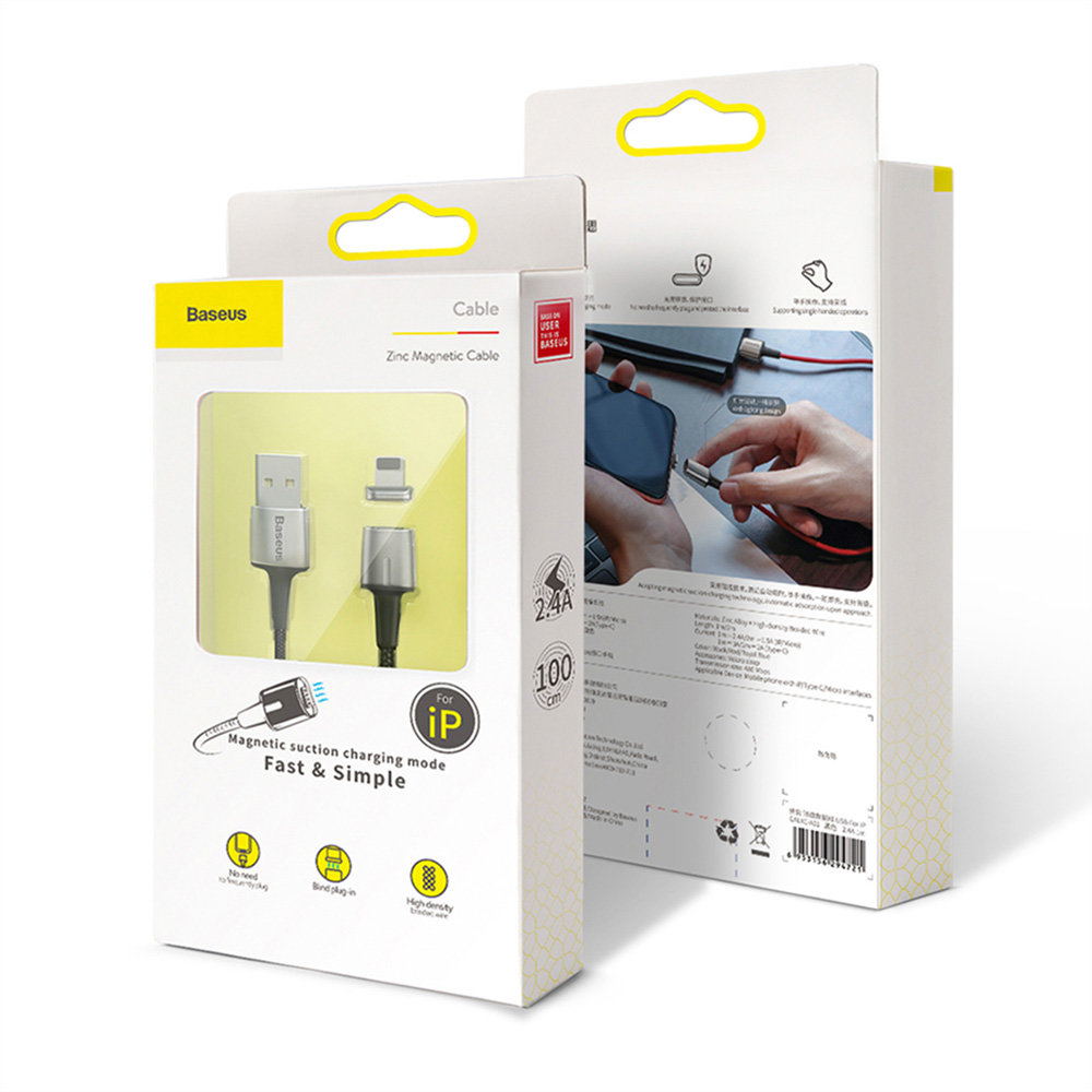 Kabel magnetyczny Lightning BASEUS Zinc - wytrzymały kabel, wyposażony w magnetyczną wtyczkę ze złączem lightning. Zastosowanie takiego systemu przekłada się na wygodę użytkowania oraz pozwala ograniczyć zużycie gniazda. Dodatkową zaletą magnetycznej końcówki jest możliwość podpięcia kabla dowolną stroną. Produkt wyposażono również w specjalny nylonowy oplot, który zapobiega przecieraniu się i tym samym chroni przewody wewnątrz oraz diodę LED sygnalizującą ładowanie. Podniesiona została również wytrzymałość wtyków - przeszły test 10 tys podłączeń oraz zostały one specjalnie wyprofilowane, tak aby możliwe było użytkowanie kabla nawet w przypadku, kiedy Twój telefon znajduje się w etui. Kabel posiada funkcję szybkiego ładowania oraz przesyłania danych. Kabel obsługuje szybie ładowanie do 2,4A mocy. Kabel o długości 100 cm.