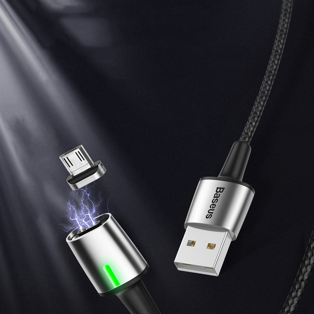 Kabel magnetyczny micro-USB BASEUS Zinc - wytrzymały kabel, wyposażony w magnetyczną wtyczkę ze złączem micro-USB. Zastosowanie takiego systemu przekłada się na wygodę użytkowania oraz pozwala ograniczyć zużycie gniazda. Dodatkową zaletą magnetycznej końcówki jest możliwość podpięcia kabla dowolną stroną. Produkt wyposażono również w specjalny nylonowy oplot, który zapobiega przecieraniu się i tym samym chroni przewody wewnątrz oraz diodę LED sygnalizującą ładowanie. Podniesiona została również wytrzymałość wtyków - przeszły test 10 tys podłączeń oraz zostały one specjalnie wyprofilowane, tak aby możliwe było użytkowanie kabla nawet w przypadku, kiedy Twój telefon znajduje się w etui. Kabel posiada funkcję szybkiego ładowania oraz przesyłania danych. Kabel obsługuje szybie ładowanie do 1,5A mocy. Kabel o długości 200 cm.