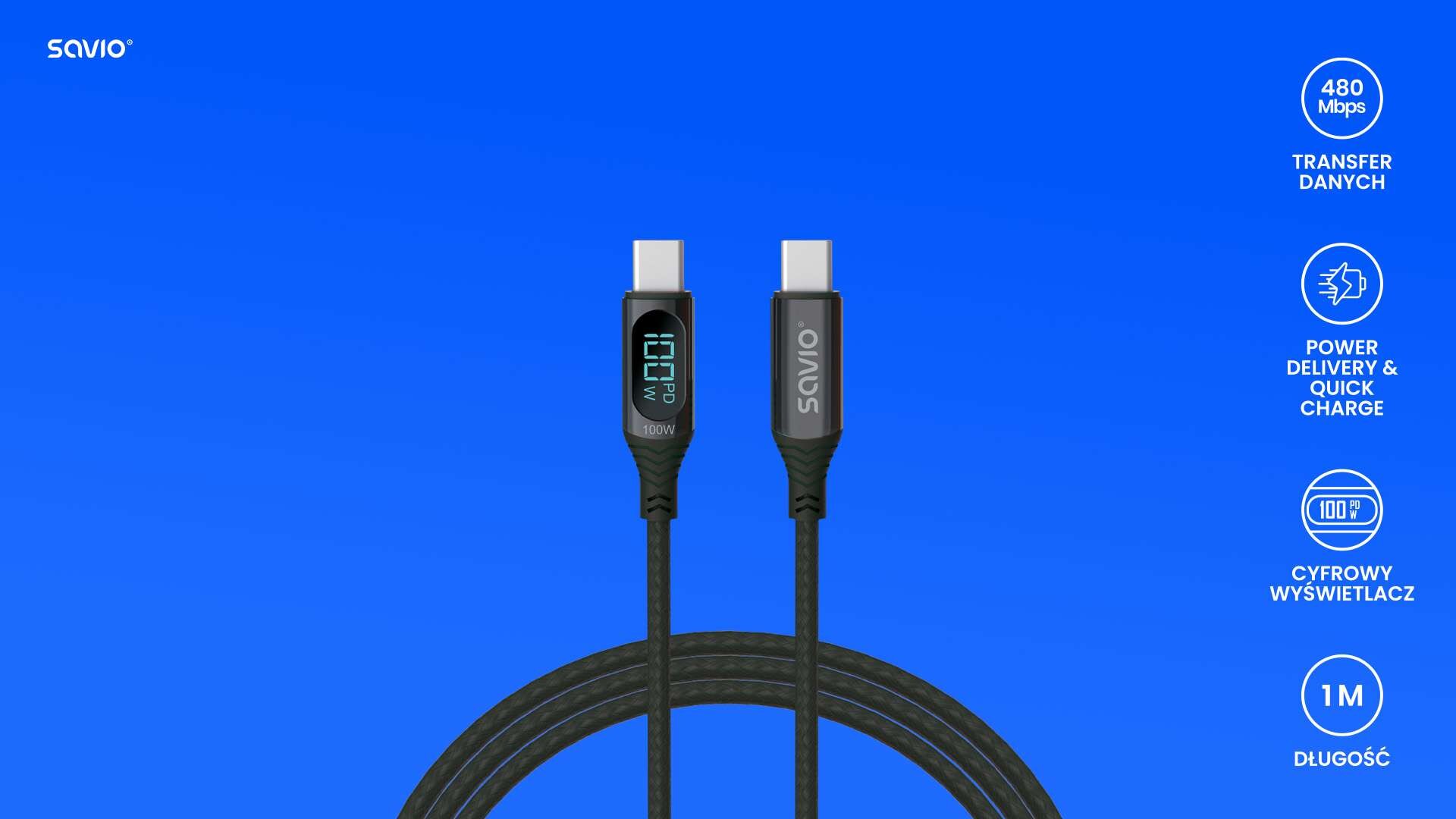 Kabel USB-C - USB-C SAVIO CL-174 100W 1 m Czarny