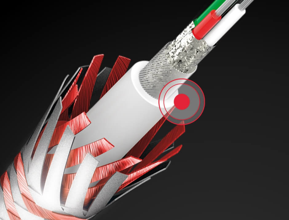 Wytrzymały kabel pokryty odblaskowym materiałem