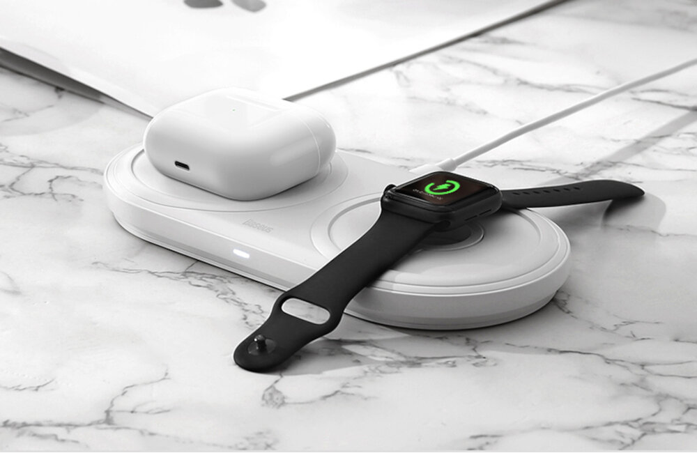 Produkt składa się z dwóch elementów. Pierwszy z nich, którym jest ładowarka indukcyjna 10W, pozwoli z łatwością naładować baterię Twojego smartfona. Dzięki bezprzewodowej konstrukcji możesz wyjątkowo szybko podłączyć swój telefon. Z kolei drugi element to przenośna podstawka do ładowania zegarka Apple Watch. Pozwoli ona na prawidłowe ułożenie akcesorium wraz z zachowaniem jego całkowitego bezpieczeństwa.