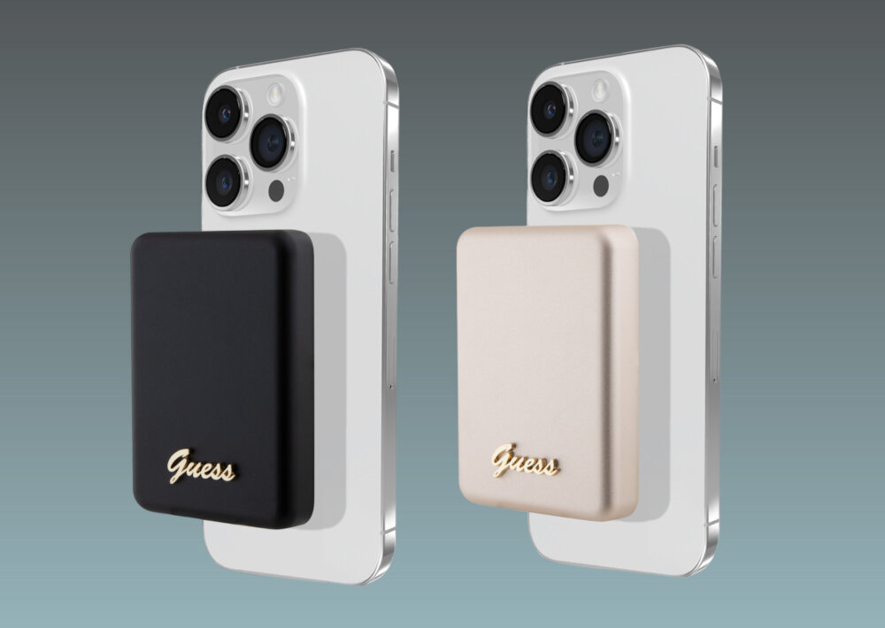 Powerbank indukcyjny GUESS Metal Script Logo MagSafe 5000 mAh 15W Złoty