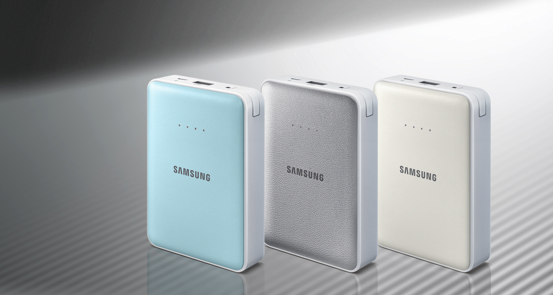 Pastelowa kolorystyka Akumulator zewnętrzny Samsung o pojemności 8 400 mAh odznacza się prostą konstrukcją i dostępny jest w trzech pastelowych kolorach. Komfort użytkowania podnosi także wykończenie ze sztucznej skóry.