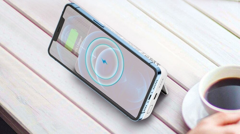 Powerbank Choetech B651 to innowacyjne rozwiązanie dla użytkowników iPhone'ów – szczególnie nowszych modeli wyposażonych w technologię MagSafe. Dzięki zastosowaniu magnetycznych punktów przyczepienia, ten powerbank dokładnie przylega do iPhone'a, gwarantując pewne i wydajne ładowanie. Model B651 najlepiej sprawdza się z modelami iPhone 12/13, w których nie koliduje on z wyspą aparatu i nie przeszkadza w jego zwyczajnym użytkowaniu podczas procesu ładowania.