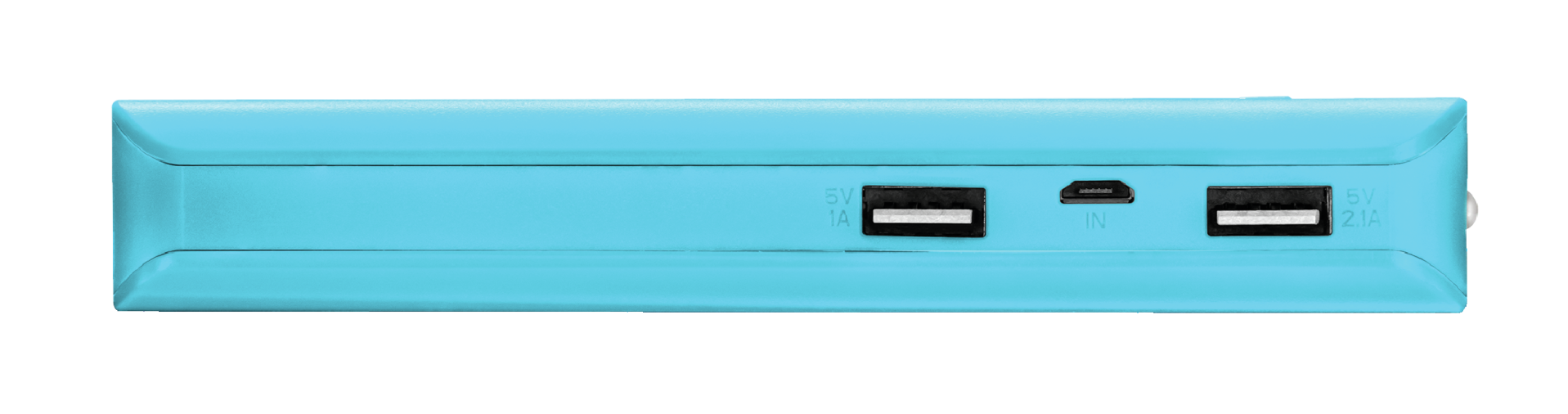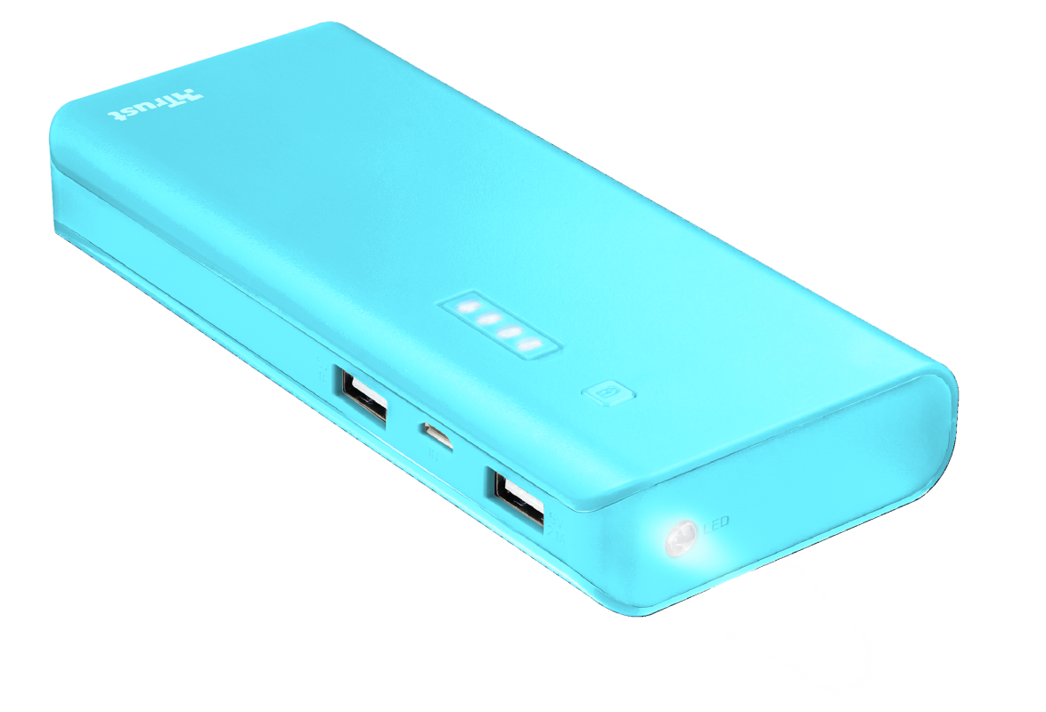Powerbank Trust Primo ma 2 porty USB pozwalające ładować jednocześnie smartfona, a nawet tablet. Pojemność 10 000 mAh pozwala ładować smartfon na 40 dodatkowych godzin, a tablet – na 15 dodatkowych godzin. * Dwa kable micro USB pozwolą bez problemu podłączyć urządzenia do powerbanku.