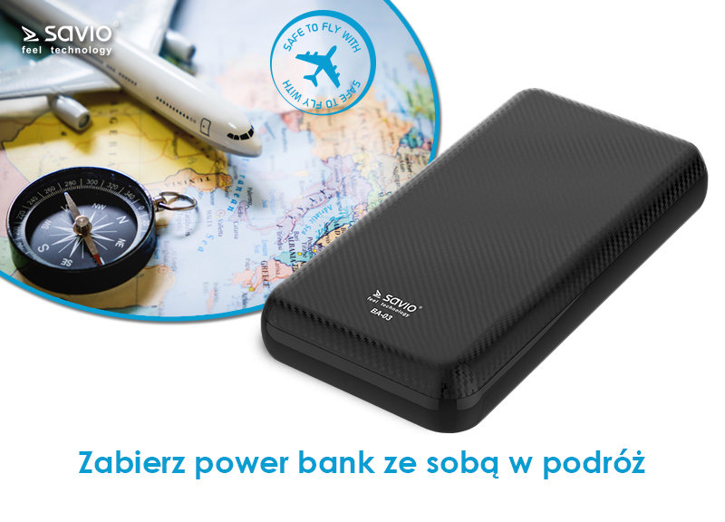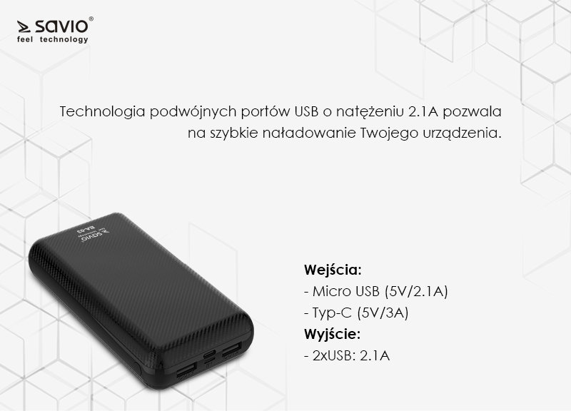 - Powerbank SAVIO 20000mAh BA-03 5W Czarny