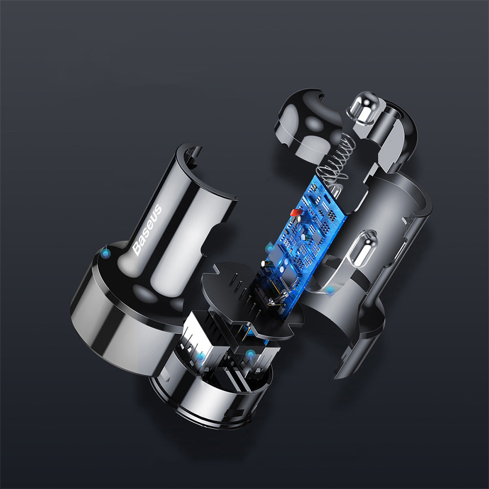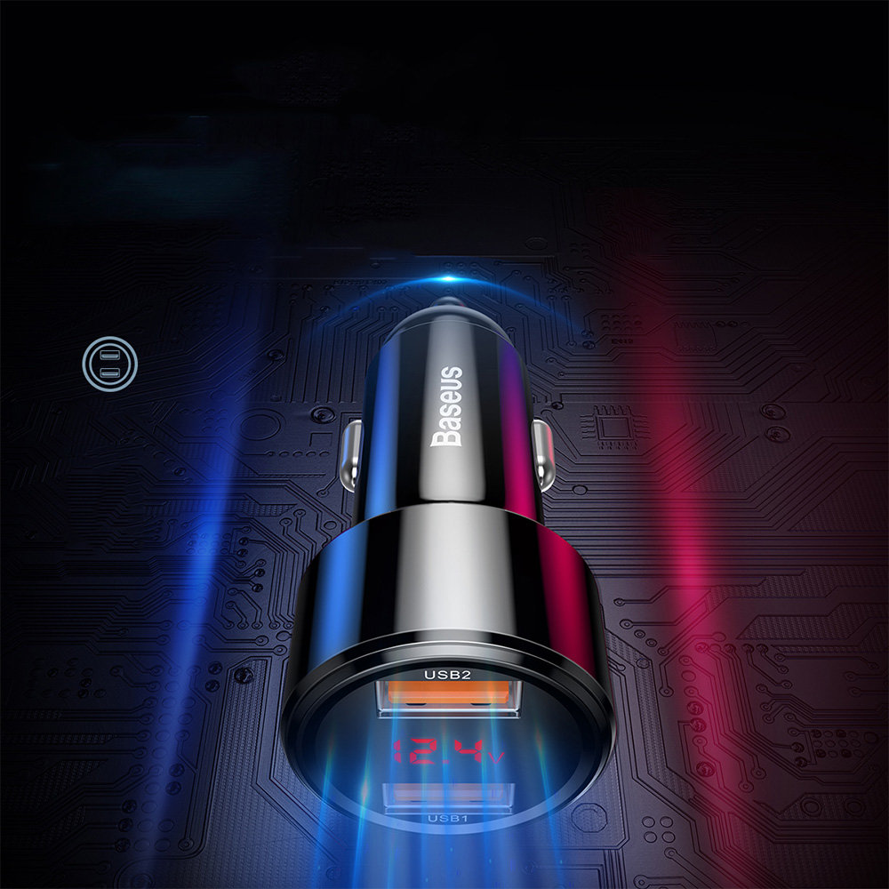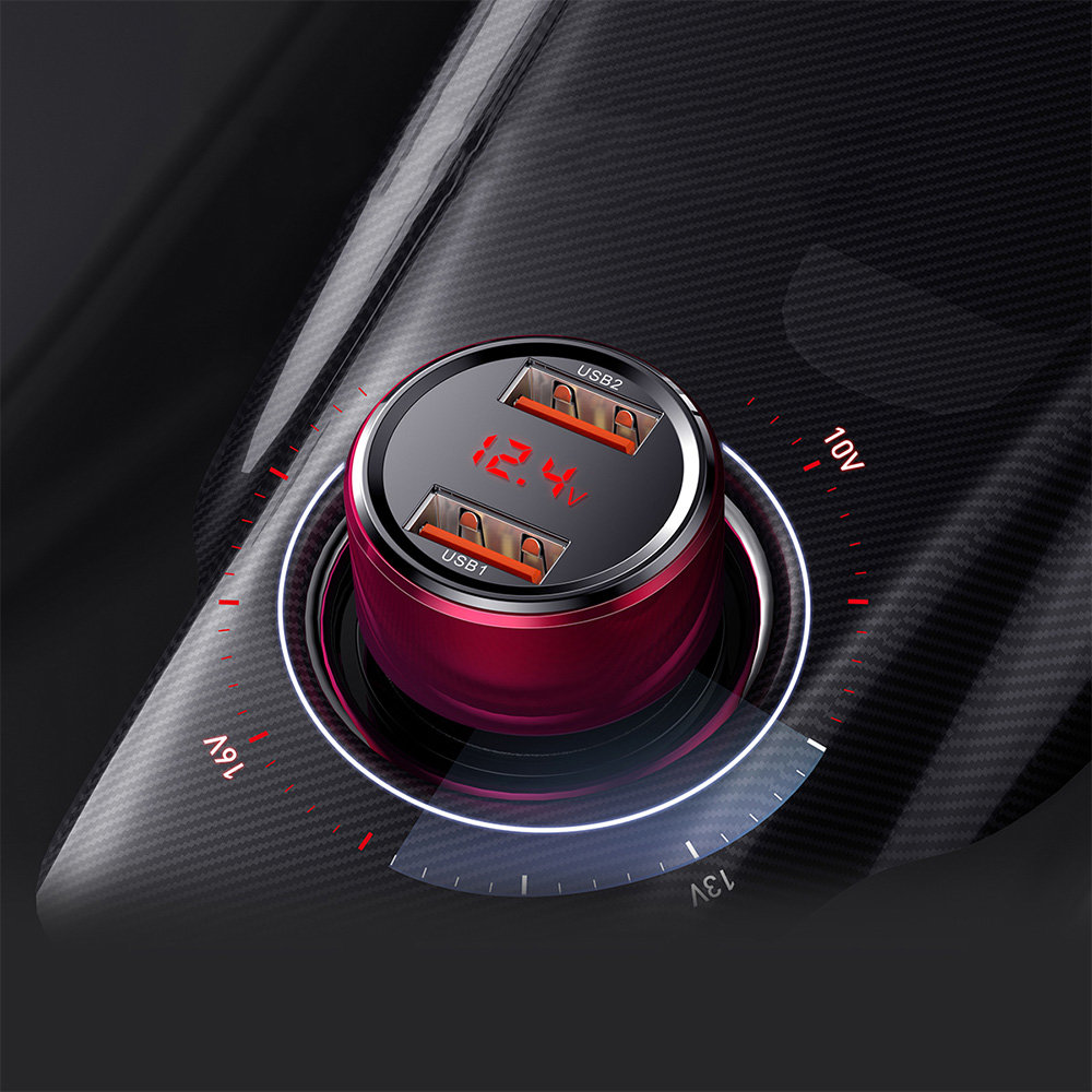 Ładowarka USB BASEUS Magic LED - jest to uniwersalna ładowarka samochodowa wyposażona w dwa porty USB wspierające technologię QC 3.0, które służą do zasilania oraz ładowania urządzeń mobilnych. Zaawansowany system zarządzania energią zapewnia optymalny prąd ładowania. Ładowarka posiada system ochrony zapewniający stabilną i bezpieczną pracę, eliminując ryzyko uszkodzenia ładowanego urządzenia. Dzięki łącznej mocy 45 W szybciej naładujesz swoje urządzenia. Dodatkowo ładowarka została wyposażona w wyświetlacz LED, dzięki któremu można monitorować pracę ładowarki oraz stan akumulatora.