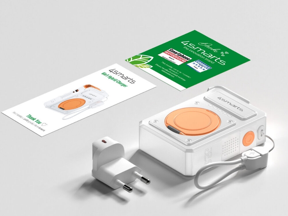Ładowarka hybrydowa 4SMARTS 6w1 PD 22.5W z powerbankiem 10000 mAh + kabel USB-C - USB-C Biały