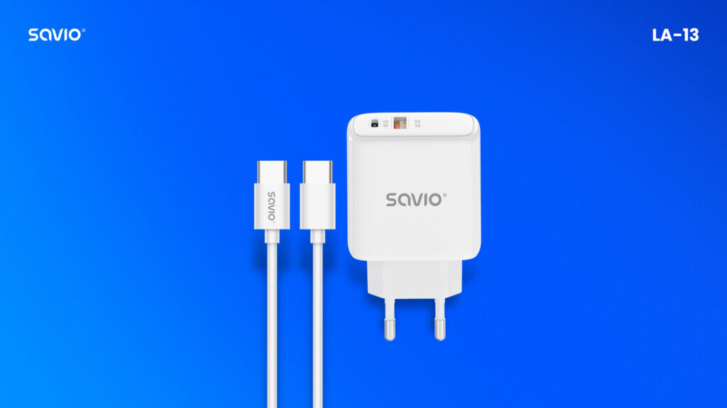 Ładowarka sieciowa SAVIO LA-13 20W + Kabel USB-C - USB-C Biały