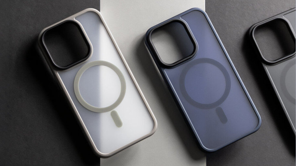 Charakterystyczny magnetyczny pierścień stanowi główny element etui Hybrid Frost MAG Cover, doskonale integrując się z matową powłoką, odporną na odciski palców (anti-fingerprint). Dzięki wbudowanym magnesom użytkownik może swobodnie korzystać z akcesoriów MagSafe, takich jak bezprzewodowe ładowarki, power banki, uchwyty samochodowe i statywy.