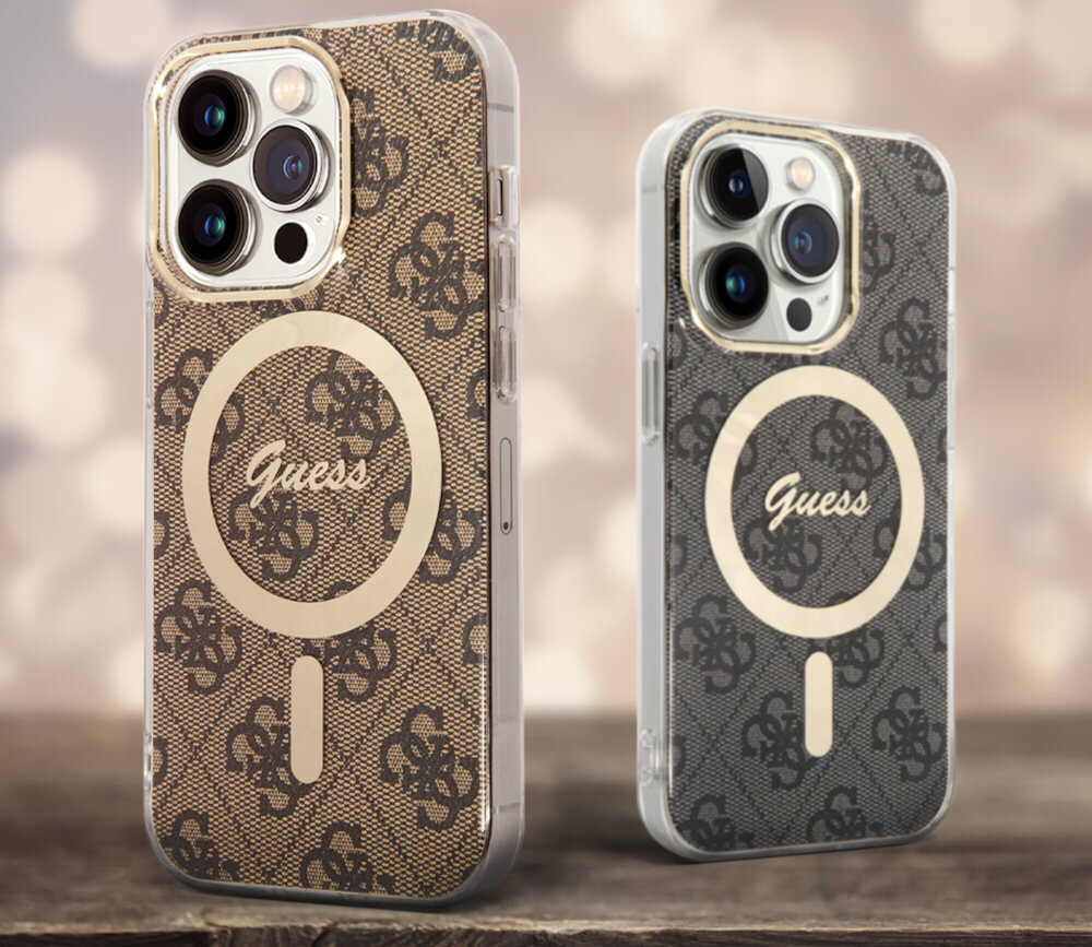 Eleganckie etui z linii 4G Print wyróżnia się niepowtarzalnym wzorem 4G, który jest rozpoznawalnym na całym świecie motywem używanym przez ceniony dom mody Guess. Ten charakterystyczny motyw jest nieodłącznym elementem wykorzystywanym przez markę Guess i jest symbolem najwyższej jakości produktów, które oferuje swoim klientom. Koncept marki jest oparty na harmonijnej równowadze pomiędzy najnowszymi trendami modowymi a klasycznym stylem, co odzwierciedla się również w projekcie kolekcji 4G Print. Ekskluzywny charakter produktu podkreślają dodatki w postaci złotej ramki wokół aparatu oraz emblematu domu mody Guess.