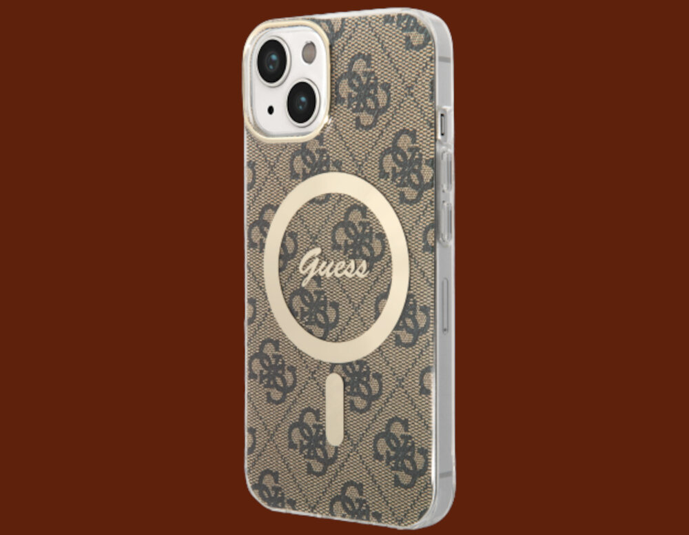 Etui GUESS 4G Print do Apple iPhone 14 Brązowy + Ładowarka MagSafe