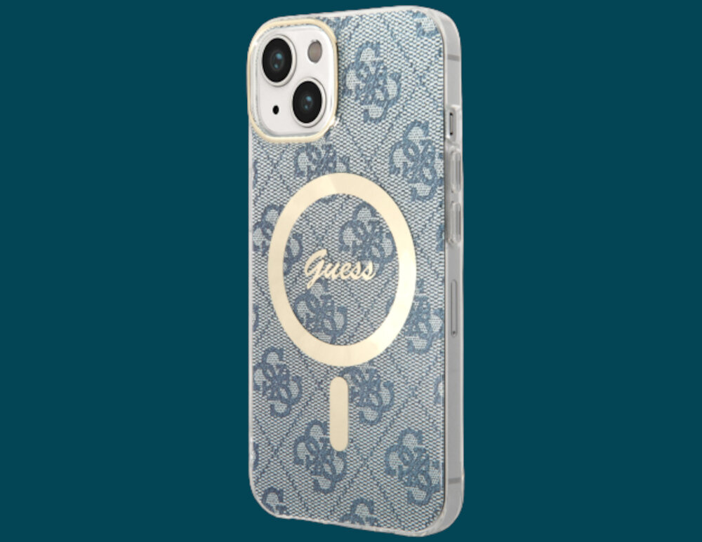 Etui GUESS 4G Print do Apple iPhone 14 Niebieski + Ładowarka MagSafe