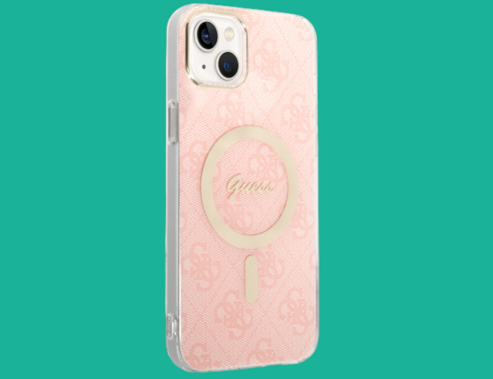 Etui GUESS 4G Print do Apple iPhone 14 Plus Różowy + Ładowarka MagSafe
