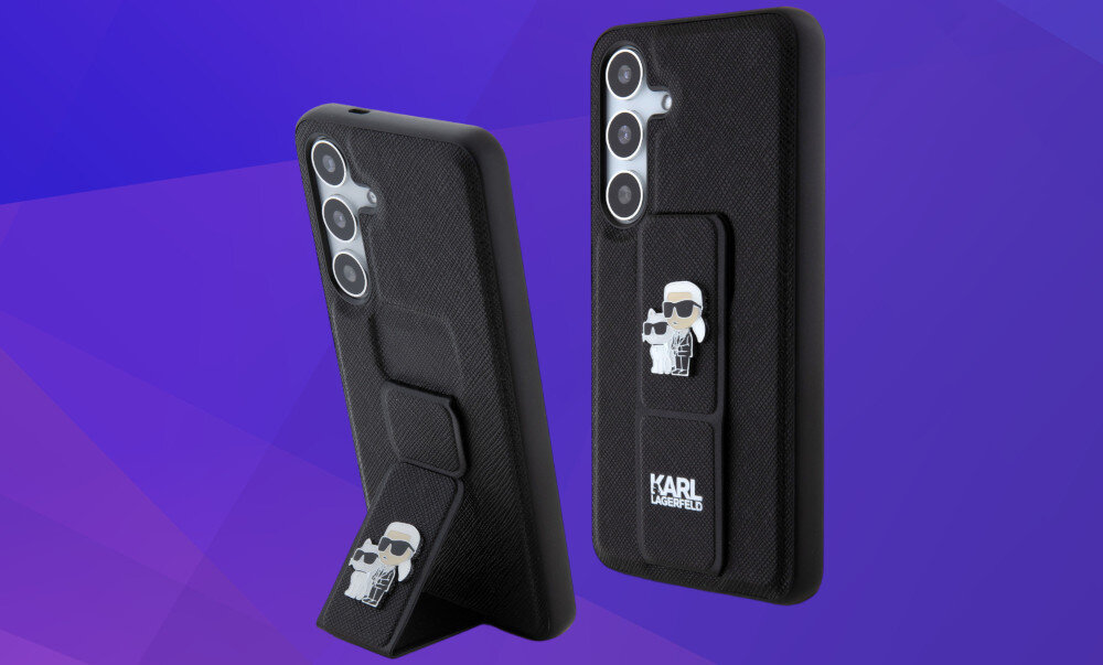 Etui KARL LAGERFELD Gripstand Saffiano Karl&Choupette Pins do Samsung Galaxy S24 Czarny