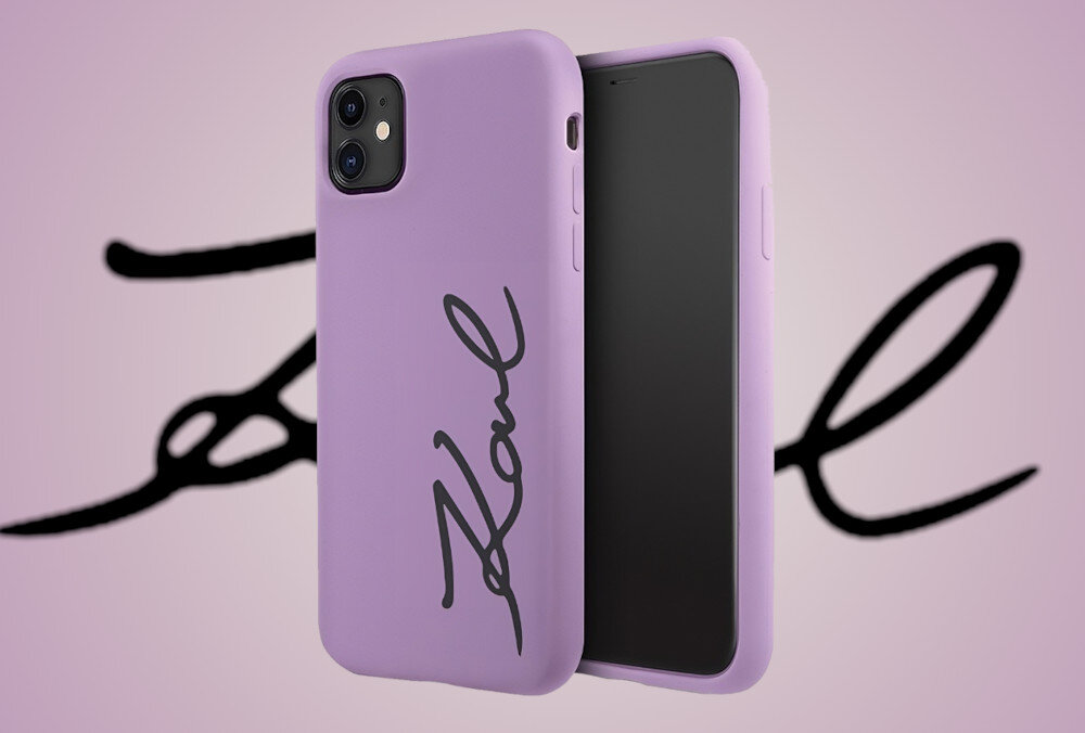 Etui KARL LAGERFELD Silicone Signature do Apple iPhone 11/Xr Purpurowy