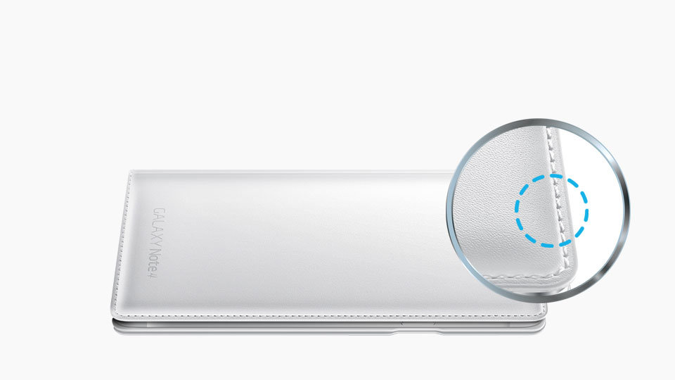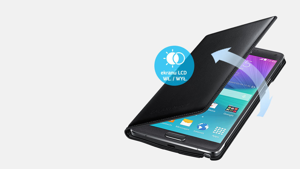 Etui z klapką „Classic Edition” do Galaxy Note 4 automatycznie włącza / wyłącza ekran przy otwieraniu / zamykaniu klapki.