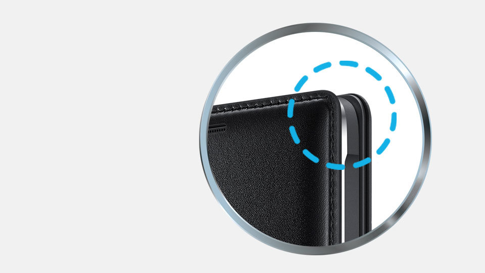 Brzegi etui wystają poza obrys urządzenia i posiadają specjalne wykończenie, tak aby chronić boki smartfona.