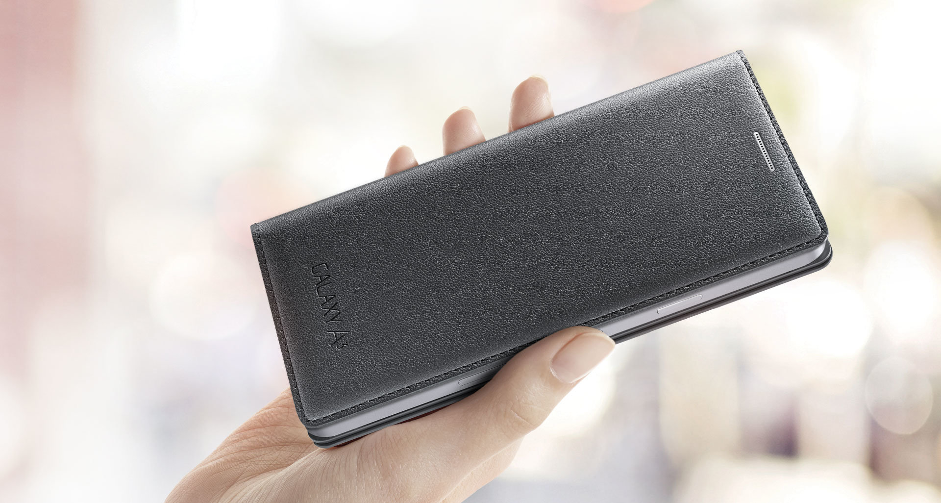 | Doskonały chwyt Etui z klapką do modelu Galaxy A3 jest wyjątkowo płaskie, dzięki czemu doskonale leży w dłoni. |