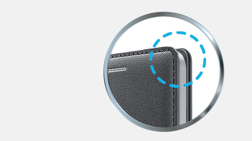 | Ochrona boczna Brzeg etui wystaje poza obrys urządzenia i posiada specjalne wykończenie, które chroni boki smartfona. |