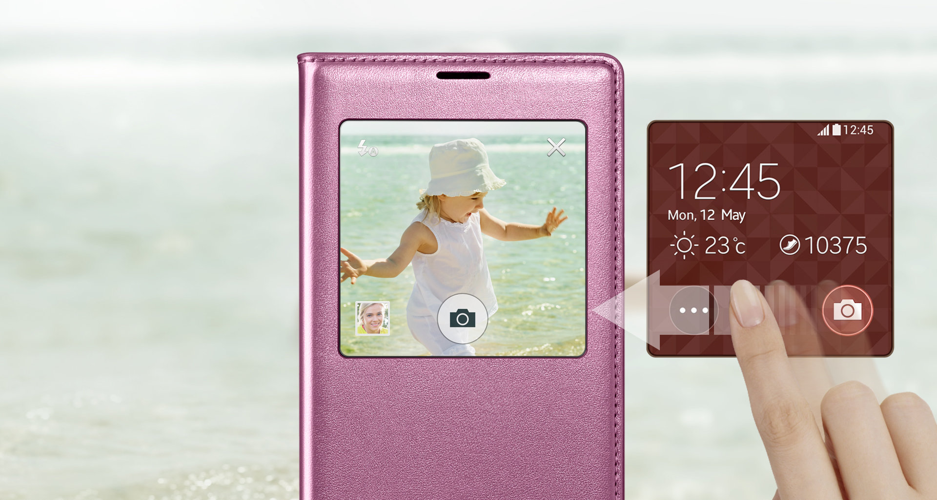 | Dostęp do najważniejszych funkcji Etui S View zapewnia nie tylko ochronę, ale też ułatwiony dostęp do funkcji Galaxy S5. Odbieraj lub odrzucaj połączenia telefoniczne bez otwierania etui. Możesz także odczytywać wiadomości tekstowe, alarmy oraz korzystać z funkcji oddzwaniania i personalizacji tapety. |