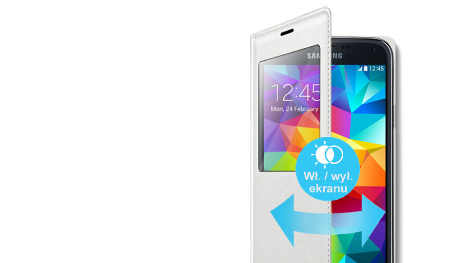 | Włączanie i wyłączanie ekranu Etui S View Cover Galaxy S5 automatycznie włącza i wyłącza ekran podczas otwierania i zamykania etui. |