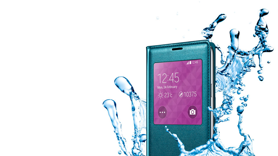 | Zadbaj o wodoodporność Dzięki specjalnej konstrukcji etui Galaxy S5 będzie zabezpieczony przed działaniem wody. |