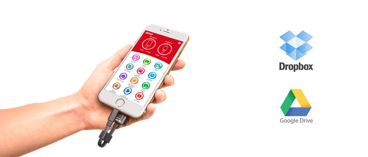 W prosty i szybki sposób kopiuj lub przenoś pliki z karty microSD do wewnętrznej pamięci iPhone'a lub iPada. Teraz możesz tworzyć własne foldery w systemie iOS! Wszystko dzięki dedykowanej, darmowej aplikacji iDrive. |