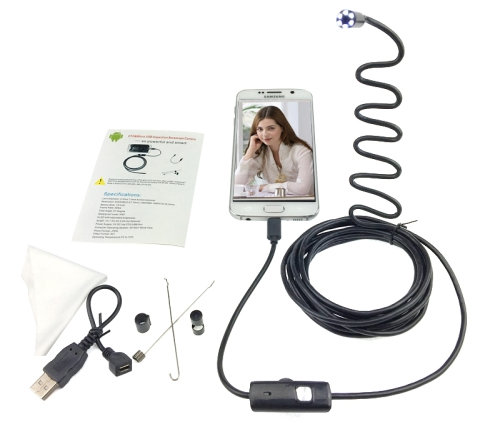 Endoskop - wodoszczelna kamera USB z wbudowanym oświetleniem LED, która pozwala na obserwację trudno dostępnych miejsc, gdzie nie jesteśmy wstanie zajrzeć. Kamera endoskopowa to doskonała alternatywa dla drogich kamer inspekcyjnych. Długi przewód oraz mała średnica kamery umożliwiają obserwację trudno dostępnych miejsc, takich jak: