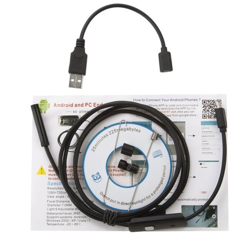 Endoskop jest wodoodporny, może pracować również pod wodą, przykładowo w częściowo zalanych rurach, czy basenach. Zestaw składa się z: