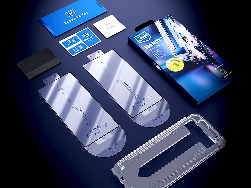 Najważniejszą innowacją w szkle 3MK HARDY® Hardura 9H™ jest aplikator ProFIT™, czyli precyzyjny aplikator, który sprawia, że instalacja szkła jest niezwykle łatwa, szybka i bezproblemowa. Dzięki niemu dopasowanie szkła do ekranu telefonu staje się intuicyjne, nawet dla osób, które nigdy wcześniej nie montowały takiej ochrony. Aplikator pozwala na precyzyjne ułożenie szkła, minimalizując ryzyko powstania pęcherzyków powietrza czy krzywego naklejenia, co jest częstym problemem przy standardowych foliach i szkłach. To rozwiązanie eliminuje stres związany z montażem.