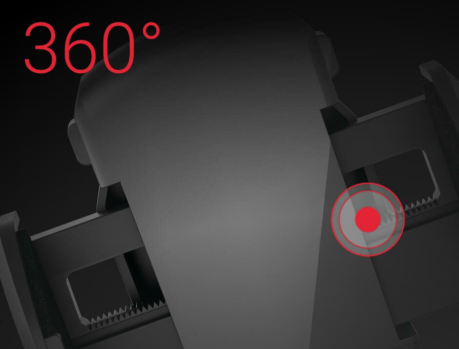 Obrotowy zacisk daje możliwość obrotu uchwytu o 360° . Dzięki temu możesz ustawić telefon w dowolnej, wygodnej dla Ciebie pozycji. Za każdym razem, gdy za kółkiem usiądzie inny kierowca, bez problemu dopasuje uchwyt do swoich potrzeb, tak, by obraz był zawsze jak najbardziej czytelny.
