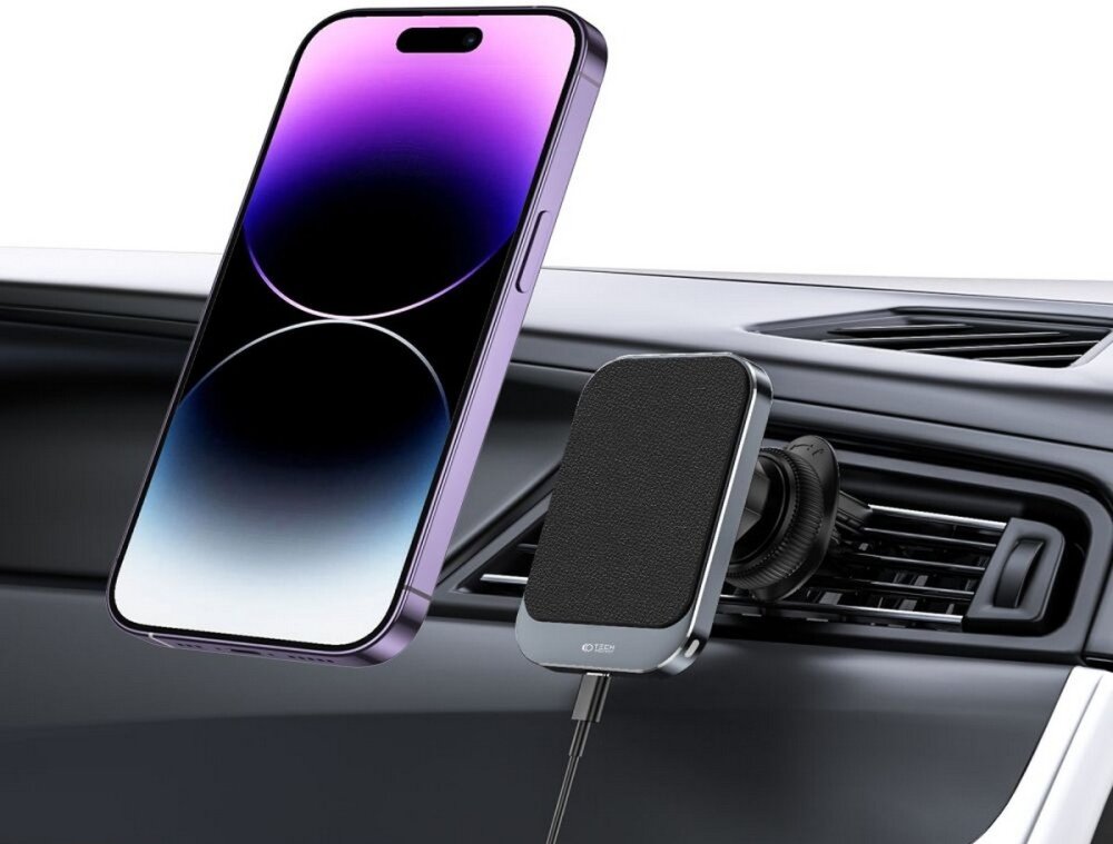 Uchwyt na telefon Tech-Protect MM15W-V2 MagSafe Vent Charger 15W to wyjątkowe akcesorium przeznaczone dla posiadaczy smartfonów, którzy cenią sobie wygodę i efektywność w codziennym użytkowaniu swojego urządzenia. Produkt łączy w sobie zalety uchwytu samochodowego oraz szybkiej ładowarki bezprzewodowej, umożliwiając łatwe i bezpieczne korzystanie z telefonu podczas jazdy.