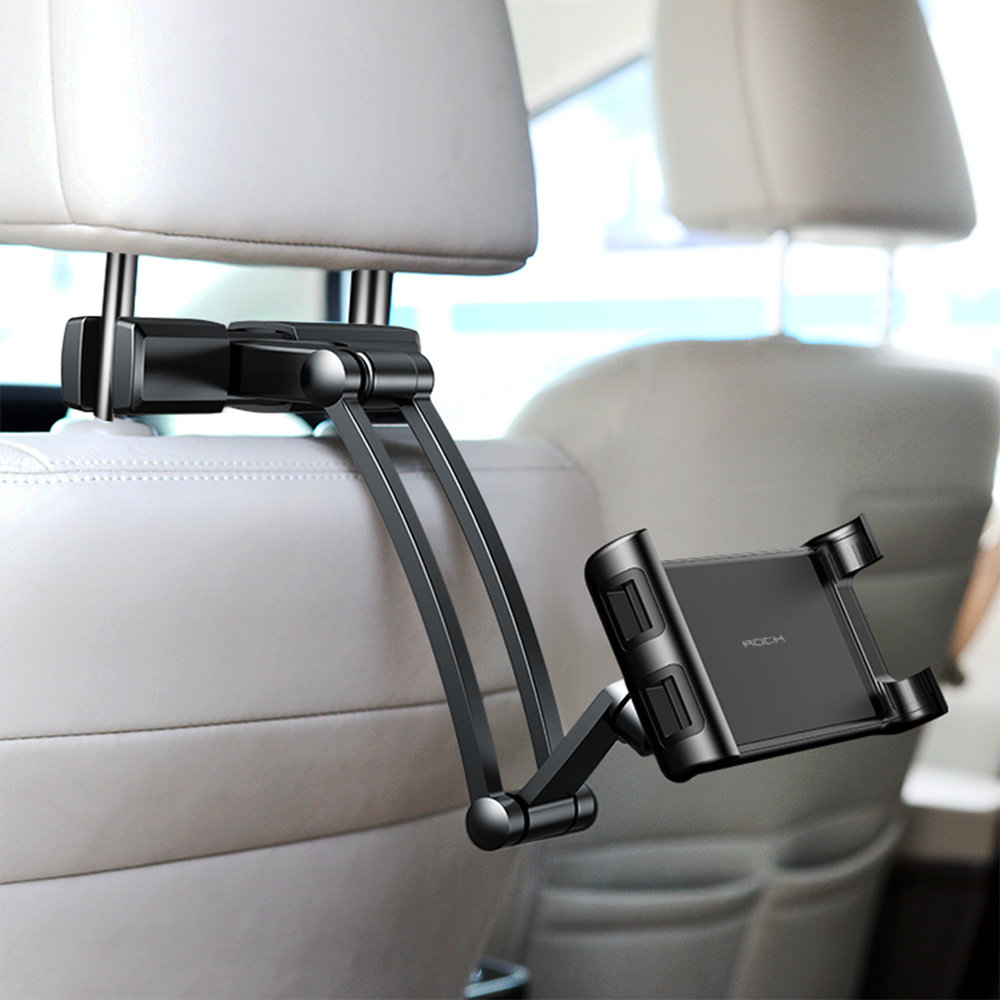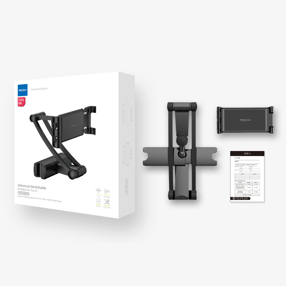 Uniwersalny uchwyt samochodowy na zagłówek firmy ROCK pasuje do większości modeli telefonów oraz tabletów - zakres regulacji od 16-26 cm. Uchwyt montowany jest do zagłówka przy pomocy specjalnych siłowników. Posiada on regulowane ramię o zakresach ruchu od 18-36cm oraz głowice 360 stopni, co przekłada się na wygodę użytkowania. Jest to idealne rozwiązanie dla dzieci, które lubią oglądać bajki podczas jazdy.