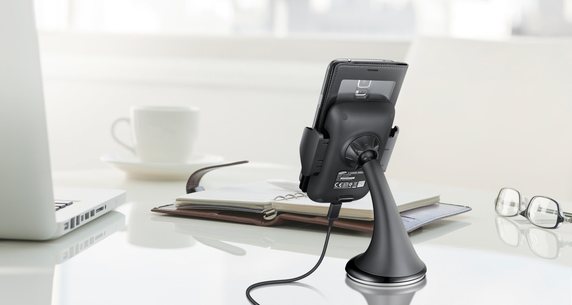 Zaawansowany uchwyt samochodowy to wygodny i bezpieczny sposób na korzystanie z funkcji smartfona w samochodzie. Podłącz stację dokującą do gniazda zapalniczki, umieść w niej telefon wyposażony w pokrywę ładowarki bezprzewodowej (sprzedawana oddzielnie) i przestań martwić się o stan baterii korzystając z funkcji nawigacji samochodowej. Podstawka uchwytu umożliwia łatwą zmianę wysokości oraz kąta nachylenia, wedle Twoich potrzeb. Możesz w nim umieścić smartfony o różnych rozmiarach ekranu (4"~5,7") - zmieszczą się także te wyposażone w etui S Charger (sprzedawana oddzielnie). Stację dokującą wykorzystasz na wiele sposobów także w domu i w biurze. Możesz na przykład używać ją jako zamiennik dla bezprzewodowej ładowarki. Podstawka pomoże bezpiecznie zamontować stację na biurku. |