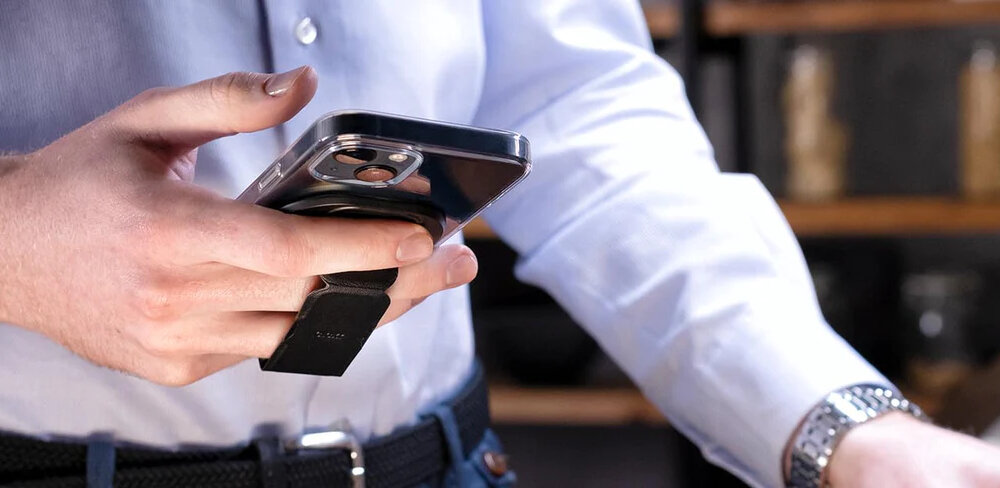 Uchwyt CLCKR zapewnia pewniejsze trzymanie i bezpieczniejsze korzystanie z urządzenia.