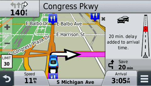 | Bezpłatna, bezterminowa subskrypcja usługi unikania utrudnień drogowych Urządzenie nüvi 58LMT jest wyposażone w usługę komunikatów drogowych Garmin Traffic, która pomaga spędzić więcej czasu w ruchu. W usłudze Garmin Traffic mapa podróży jest przez cały czas wyświetlana na ekranie. Alerty o utrudnieniach drogowych są wyświetlane obok mapy, a komunikaty są też wymawiane. Usługa komunikatów drogowych Garmin Traffic może też podać szczegółowe informacje na temat danej sytuacji, np. szacowany czas opóźnienia oraz informacje o możliwych objazdach. Może nawet potwierdzić, czy jedziesz najszybszą trasą. Bezterminowa subskrypcja komunikatów drogowych² uprawnia do otrzymywania w urządzeniu nüvi 58LMT informacji o ruchu drogowym przez cały okres użytkowania urządzenia, bez reklam i opłat subskrypcyjnych. Ponadto komunikaty drogowe firmy Garmin są przesyłane wprost do urządzenia nüvi — bez pośrednictwa smartfonu. |