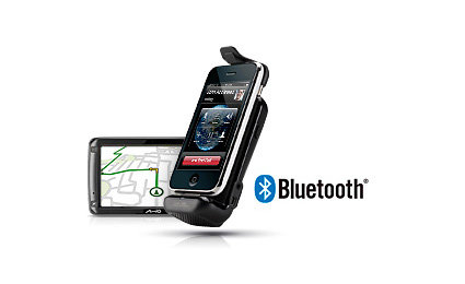 | Telefonowanie bez użycia rąk dzięki Bluetooth® Twoje Mio używa rewelacyjnej technologii Bluetooth®. Umożliwia ona bezprzewodową synchronizację z telefonem i wykorzystanie Mio jako zestawu głośnomówiącego. Teraz możesz dzwonić bez użycia rąk. |
