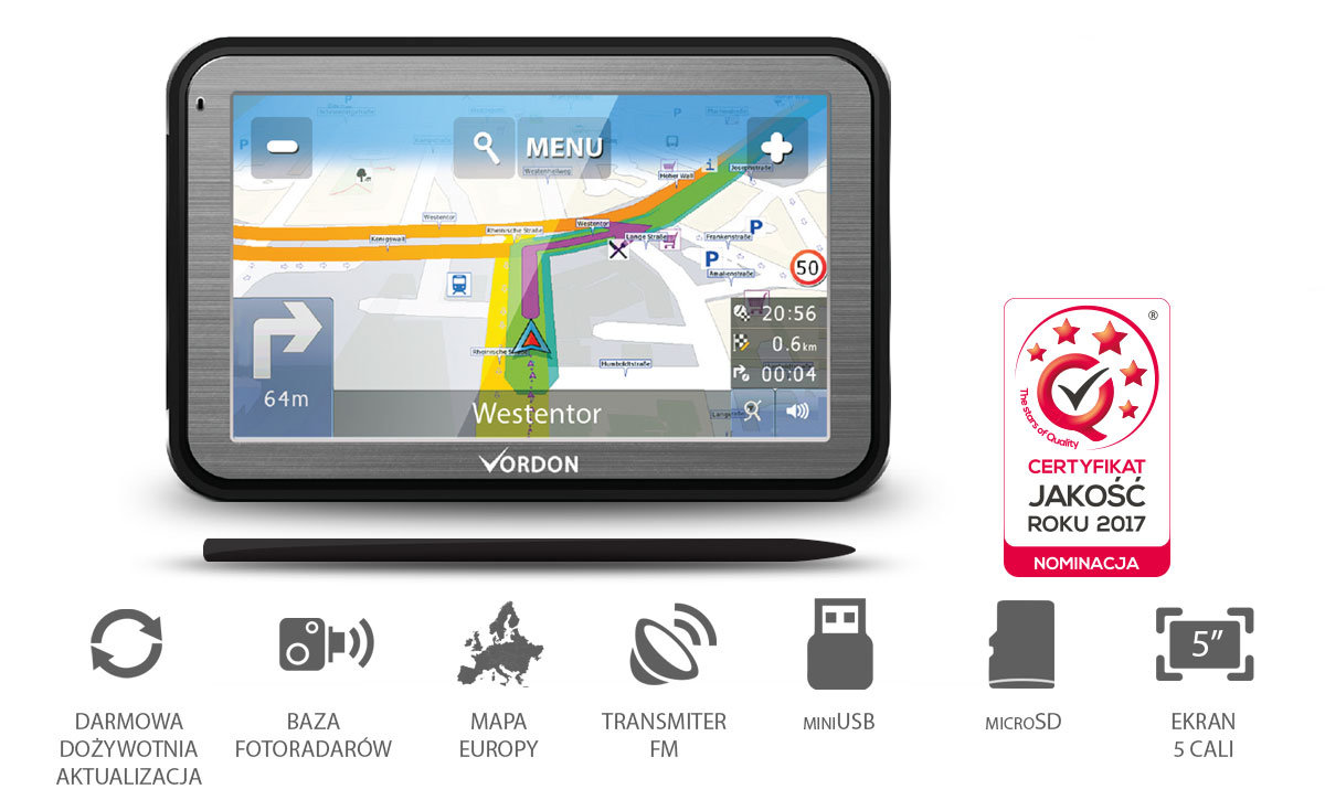 Posiadamy jedną z najbardziej szczegółowych map Europy wykorzystaną w naszym urządzeniu VORDON. Urządzanie posiada możliwość zainstalowania innych programów nawigacyjnych takich jak: - AutoMapa,- IGO, - TOMTOM. |