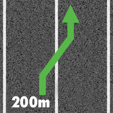 Asystent pasa ruchu wyraźnie wskazuje pas ruchu, który należy zająć przy dojeździe do skrzyżowania, aby nie ominąć zjadu na autostradzie.