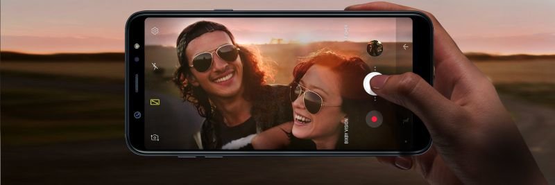 Robienie zachwycających zdjęć telefonem Galaxy A6+ jest tak proste jak pstryknięcie migawki. Przedni aparat o rozdzielczości 24 MP z dodatkową lampą umożliwia skupienie ostrości na Tobie i Twoich znajomych, nadając Twoim selfie i zdjęciom grupowym zupełnie nową jakość. Dzięki podwójnemu tylnemu aparatowi zrobisz zdjęcia jak za pomocą profesjonalnego aparatu.