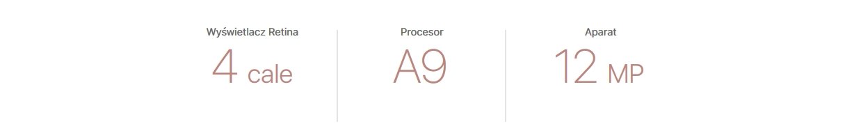 | Przedstawiamy iPhone'a SE, najpotężniejszy 4-calowy telefon świata. Wykorzystaliśmy w nim uwielbianą przez użytkowników poręczną konstrukcję, jednocześnie całkowicie ją przeprojektowując. A9 to ten sam zaawansowany procesor, w który wyposażyliśmy iPhone'a 6s. 12-megapikselowy aparat rejestruje przepiękne zdjęcia i wideo 4K. A dzięki funkcji Live Photos obrazy dosłownie ożywają na ekranie. W rezultacie powstał niewielki iPhone, który może bardzo wiele. | |||||