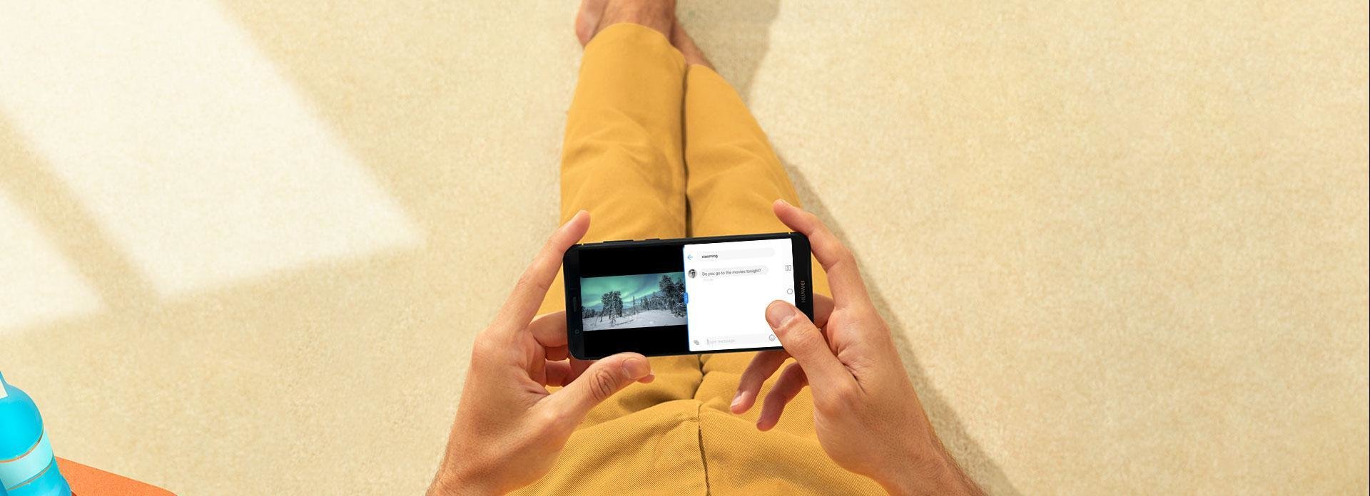 INTELIGENTNY PODZIAŁ EKRANU Funkcja podziału ekranu pozwala za pomocą jednego przycisku uruchomić dwie aplikacje obok siebie. Używając HUAWEI P smart nie musisz przerywać zabawy, kiedy podczas oglądania filmu otrzymasz ważną wiadomość. |
